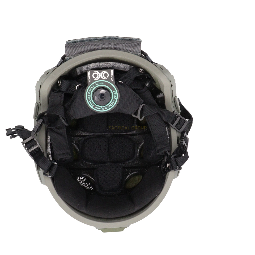 NXH01PRO to hełm typu High-Cut z bocznymi szynami ARCH, mocowaniem NVG i pokrowcem przeciwwagi, co pozwala na montaż oświetlenia, kamer i noktowizorów. System mikroregulacji z tylnym pokrętłem umożliwia szybkie i precyzyjne dopasowanie do głowy, a wentylacja i dwa zestawy gąbek zapewniają komfort podczas długotrwałego użytkowania.